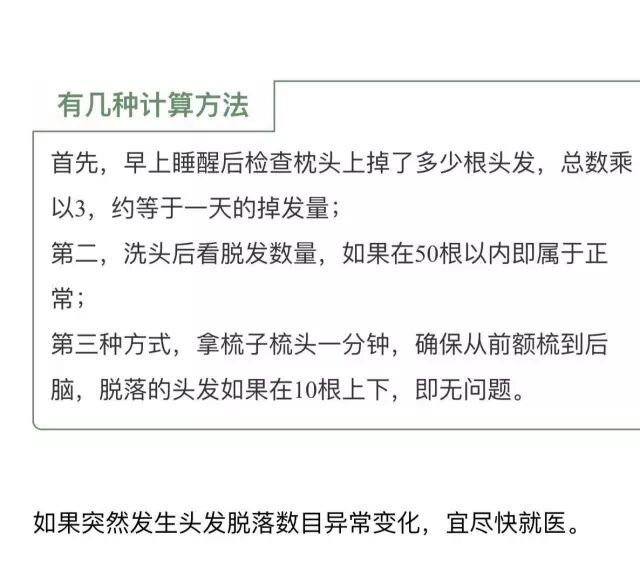 自然脱发——就普通人而言,每个人每天脱落的头发在100根以内都算是正常的。