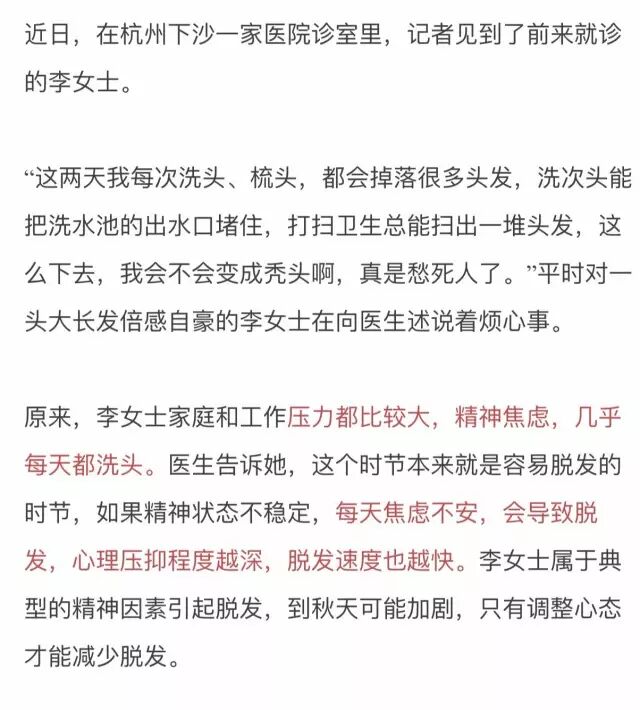 严重持续的精神压力或者因住院、分娩、手术、营养不良导致的生理压力,均会使发量变薄、变少。而且,有些掉发是不可逆的,再养回来就难了,所以别给自己太大压力!