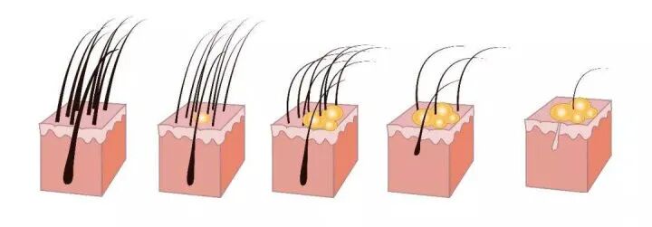 头发变细和变软本质上是某些毛囊合成头发的能力变弱,而头发少则是某些毛囊失去合成头发的能力,这个现象大部分情况下是同一件事情,那就是——毛囊生发能力变弱。