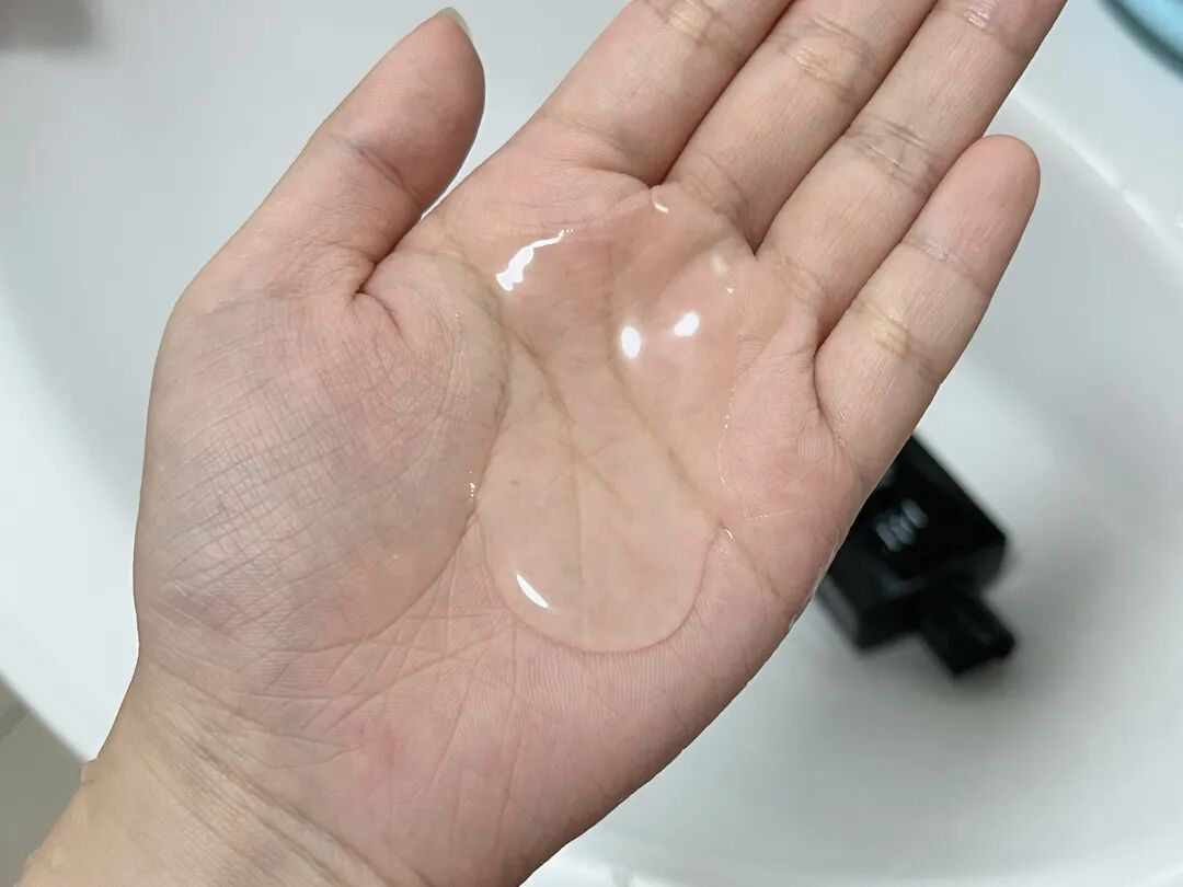 我用的这个强效防脱的质地,就是平平无奇的透明洗发液质地,没啥特别的,不稀不粘,流动性刚刚好。