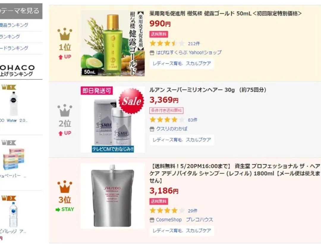 因为效果显著,小绿瓶在日本乐天市场、雅虎网站更是经常占据榜单的TOP1。