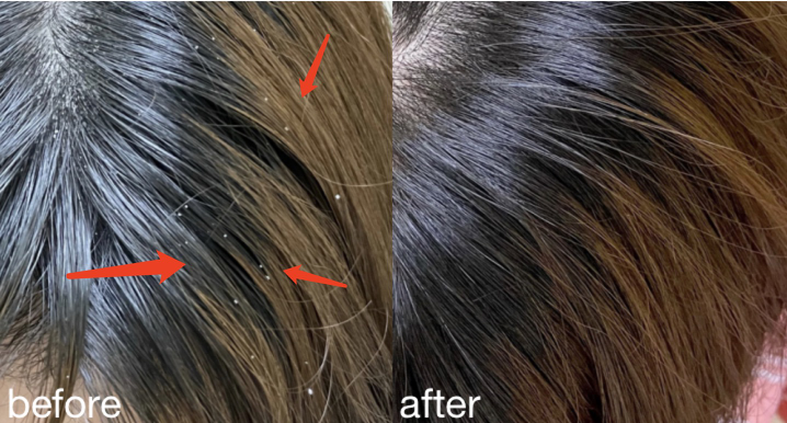 但你看看她现在的头发,原本轻轻一挠头屑就满天飞,洗过之后不仅不痒,头屑更是消失不见了。