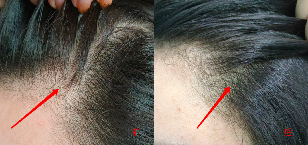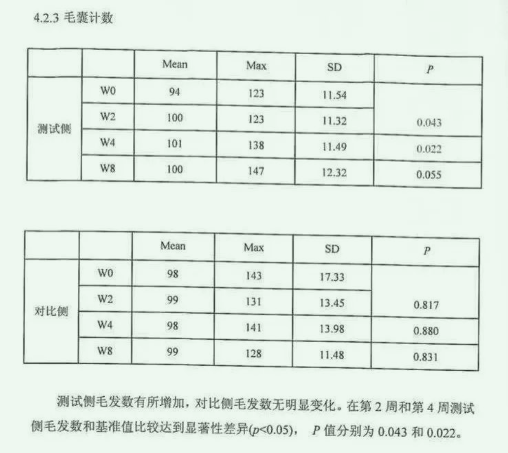 研究团队还专门找了30~50岁的男女31人作为测试对象,方法是在被测试对象左右鬓角各取对等的一块区域,用2个月观察毛发生长状况。