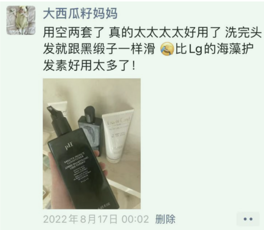 但PH截然相反,每次洗完头发都觉得自己做个高级头部SPA,香气浸润整个头发,低调优雅。