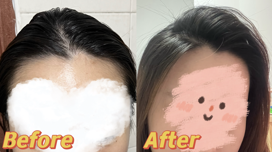 真的视觉效果上发量多了一倍不止,就好像从新长出来了好多毛,稳稳的帮你把发根给支撑起来了,完全不用担心贴头皮,清爽又轻盈。