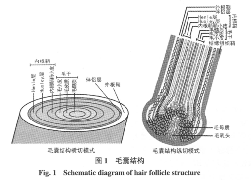 毛囊细胞分化是一个非常复杂和精密的过程,它涉及到众多细胞的信号接收和表达,粗略的理解——头发的生长来自毛乳头,毛乳头通过血液循环维持,毛乳头和毛囊各部分会大量表达各种角蛋白,最终形成坚硬的毛干(头发)。