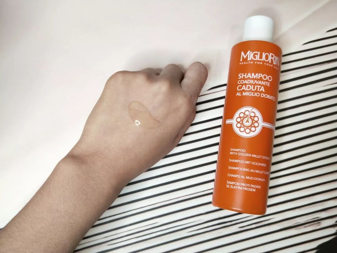 Migliorin 米革洗发水是意大利的品牌,可以说是欧洲最受欢迎的防脱育发产品之一,它是纯植物萃取的,非常安全、温和,就连孕妇也可以使用。它的主要成分是有天然黄金之称的欧洲黄金小米。黄金小米含有非常丰富的黄酮成分,黄酮是一种强效的抗氧化剂,也是脱发界知名的防脱成分。可以帮助清除头皮上的自由基,预防毛囊老化死亡,让毛囊始终保持健康有活力的状态,从而减少掉发、促进新生毛发生长。它的另一款重要成分是金丝桃,是一种名贵的中草药,作用于头皮,可以抗菌消炎、减少皮脂腺分泌,使头皮保持清爽。