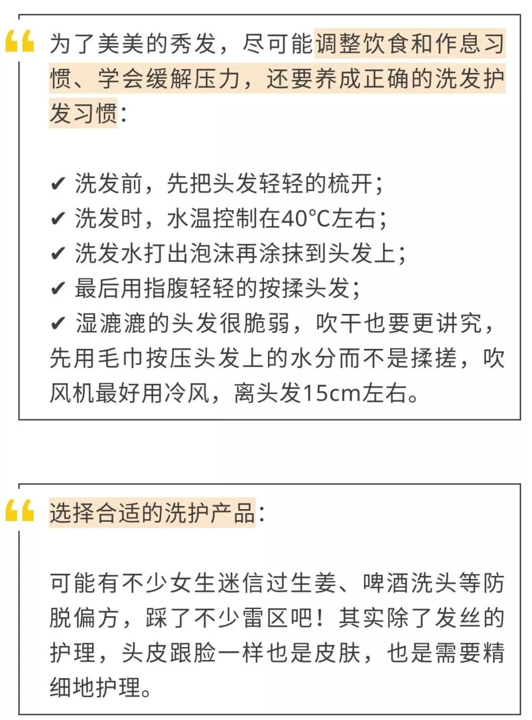 其实大家也不用太紧张,脱发其实没那么可怕,提前防脱就好,你需要知道这些防脱小tips:
