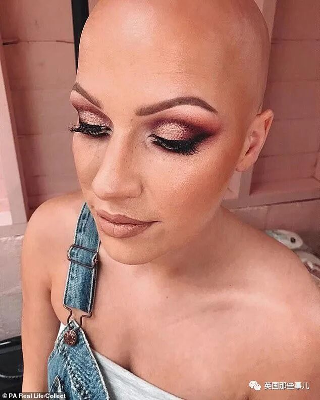 妹子是个脱发症患者,不仅头发几乎掉光,连睫毛和眉毛都所剩无几。