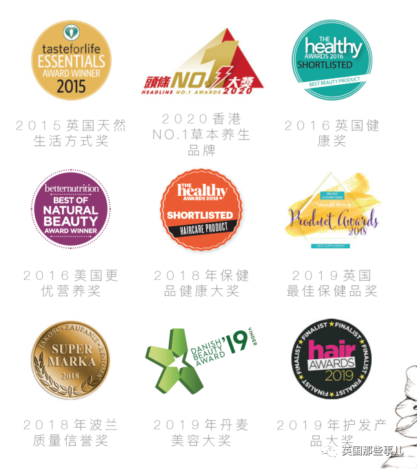 它在35个国家销售,一问世就在全世界获奖无数,把法国玛丽奖、英国健康产品年度大奖、亚洲食疗大奖、英国护发产品奖、丹麦美容大奖统统收入囊中。