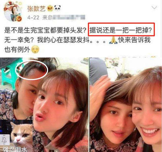就连以头发浓密著称的张歆艺,在产后也出现了脱发的现象,头皮肉眼可见稀疏了不少。