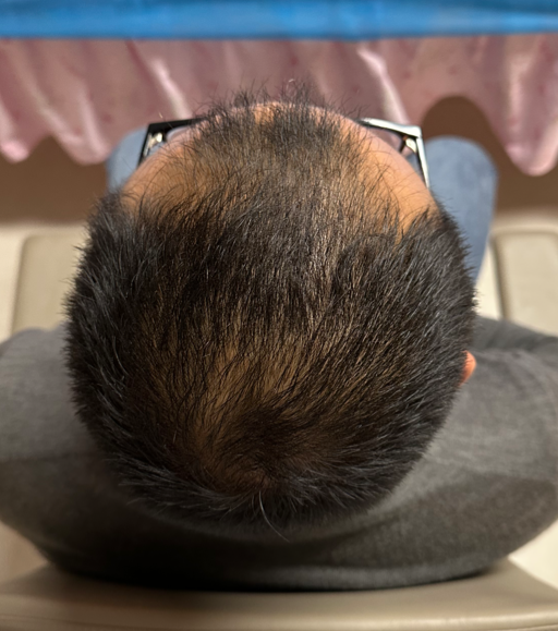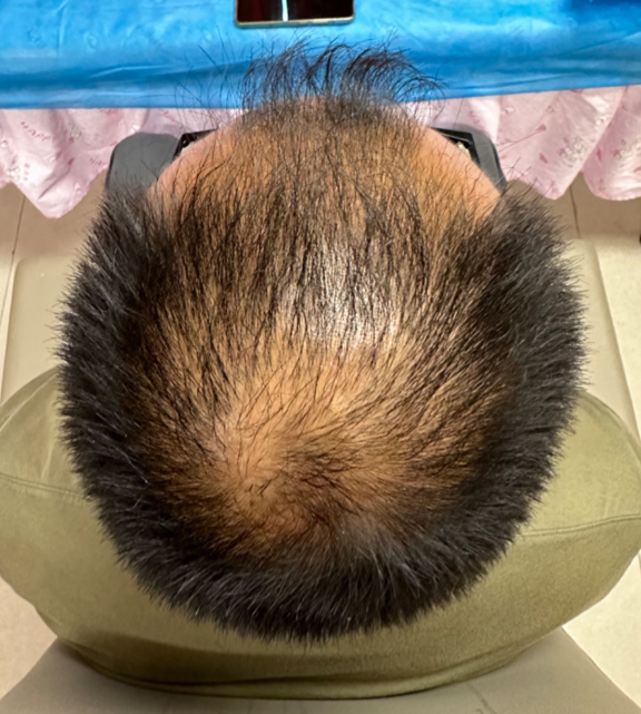 经过一个疗程的治疗,张先生的头发由少变多,发际线保住了。