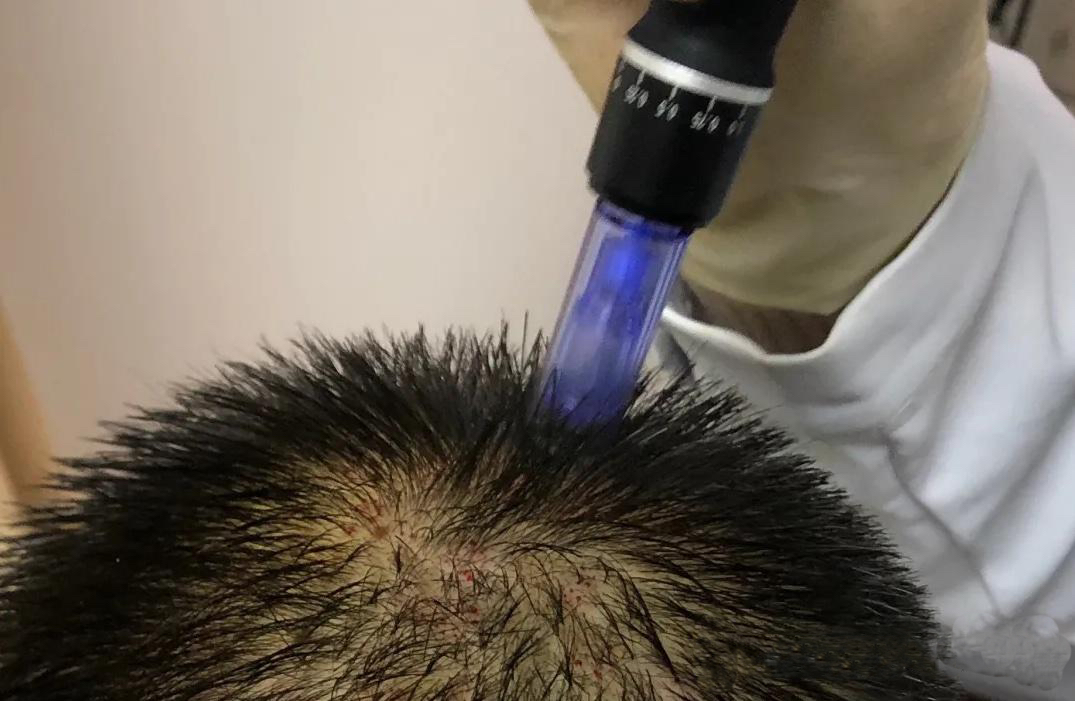 45岁的张先生是做IT工作的,每天对着电脑,还常常加班,人到中年,头顶开始出现了地中海。在朋友介绍下,他来到成都市中西医结合医院皮肤科求助,医生对他做全面检查后,诊断他是雄性激素脱发,给他开了口服药、外用药,并为他进行了微针生发治疗。