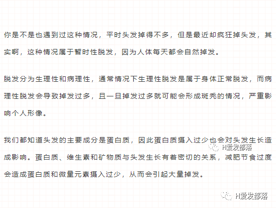 6、季节性脱发:因为气候变化、生活习惯变化导致头发受到一些刺激,也会产生掉发。