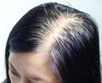 往往是头发稀疏,从中间部位向两边变宽,头皮上有斑点状区域,但前发际线不变。