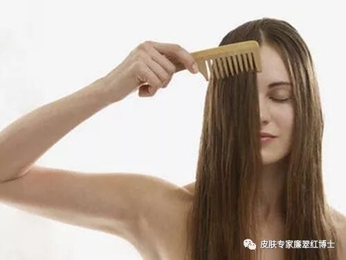 很多人觉得梳头是对头发的伤害,会刮伤毛鲮片,其实只要用对方法不仅不会造成伤害,还能让头皮得到放松,促进头皮的血液循环,减轻压力性掉发。每天起床后和睡觉前用梳子轻轻地从发梢开始梳,梳通发梢后再往上倒梳头,每次梳十分钟即可。避免使用塑料梳子梳头,因塑料材质也头发摩擦会发生静电,最好选择檀木或者牛角材质的宽齿梳或大气垫梳子。