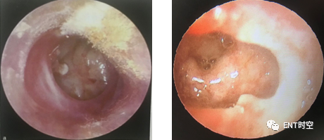 主要表现为耳道渗出稀薄或黏稠脓性液体、耳鸣和听力减退,耳内镜可见鼓膜充血、粗糙,上有广基肉芽或息肉状新生物、无穿孔。从颞骨CT片上,可见鼓室、鼓窦及乳突等组织结构正常。