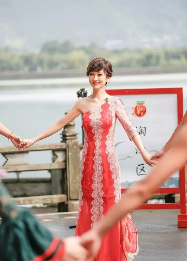 身穿红色蕾丝礼服的她引来网友围观
