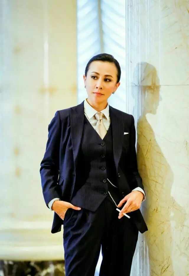 西服套装下的她配上帅气的复古背头
