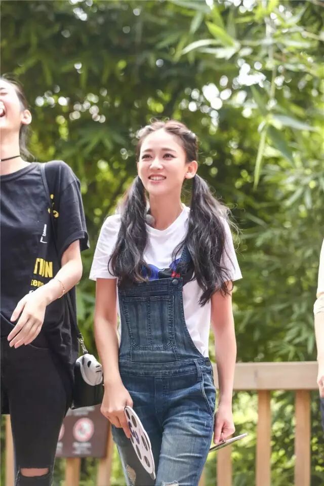 白T背带裤