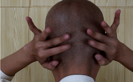 做法是两手心掩耳,然后用两手的食指、中指和无名指分别轻轻敲击脑后枕骨,发出的声音如同击鼓,所以称作鸣天鼓。