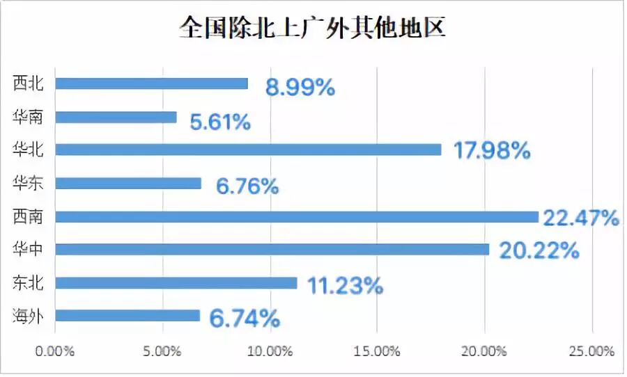 其中,来自西南地区的同学占比最多,达22.47%。(这大概是因为西南地区有几所非常优秀的法学院校吧)