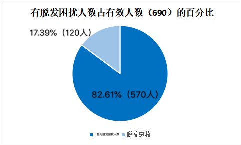 在剔除无效样本后,小编发现,面临脱发问题的法学生有120人,这一数字已经占到全班/全专业总人数的17.39%。