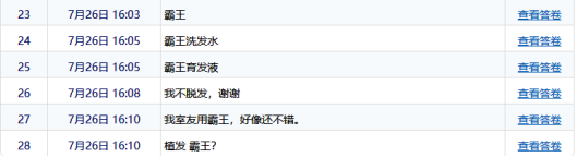 说到防脱发产品,很多人马上就会想到霸王。问卷上对霸王的呼声也相当高。