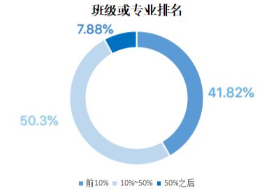 果然——脱发与学习的努力程度还是有那么一丢丢关联的。参与问卷的法学生中,竟然有41.82%的同学是班级或专业排名前10%的学霸!