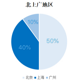 除了北京,来自上海的同学以40%的比例位居第二。广州相对较少,为10%。