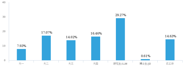 而研究生/LLM也不在少数,共有280人,占总人数的29.27%。