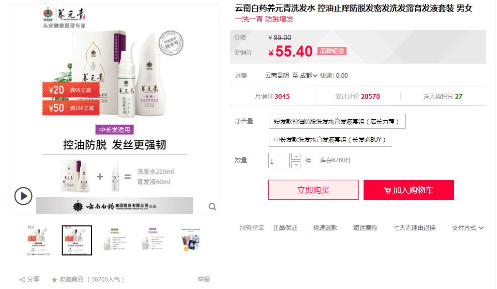 云南白药养元青洗发水,控油止痒防脱发密发洗发露育发液套装,一洗一育,防脱增发。