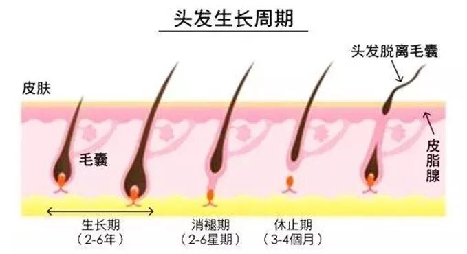 这三个时期交叉着同时进行,新旧更替,使头发总量维持在一个动态平衡的状态
