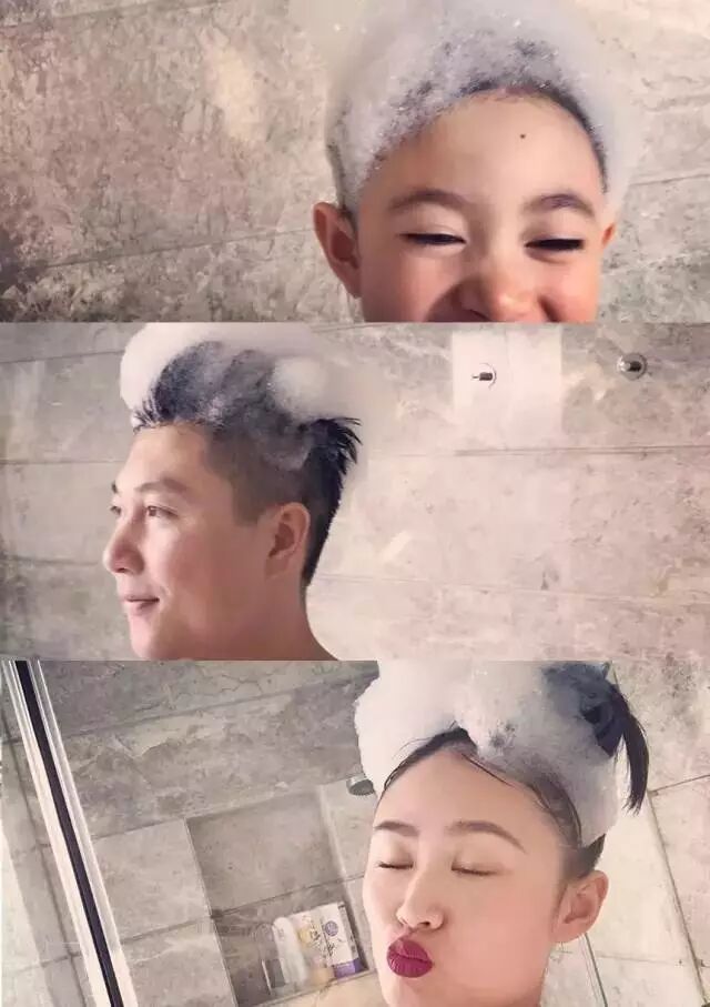 奉上一家搞怪的洗头照一张,奥莉真的太可爱了!