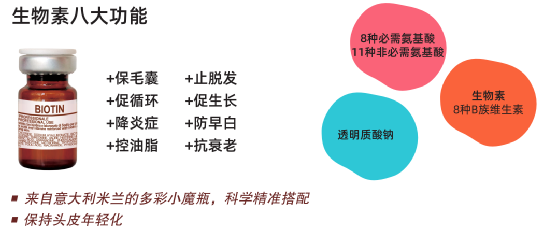 经过临床验证:百肤谜生物素具有更好的头皮抗衰、抑制脱发功效。