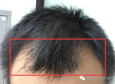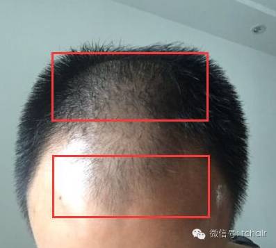 1、脱发区域在前额和头顶,基本上这两个区域出现严重脱发现象的有很大几率是雄激素脱发,如下图
