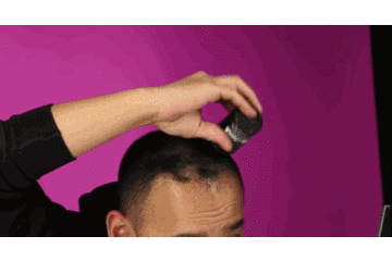 它的工作原理跟加密加长的网红睫毛膏差不多,就是给你的毛发多加一点带颜色的纤维,从而达到以假乱真的效果: