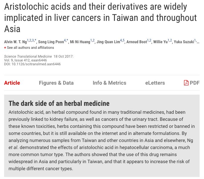 不过,去年大新闻有研究证据表明马兜铃酸导致肝癌,就直指大部分含有马兜铃酸的中草药,包括何首乌和鱼腥草(折耳根)。