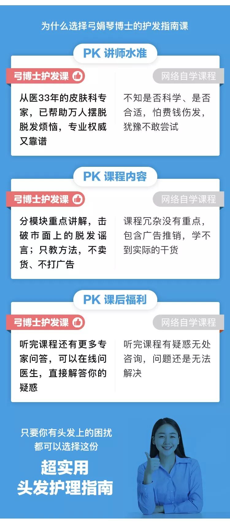 她的课,通俗易懂,学得会,用得上,学完受用一生,再也不怕脱发变秃、降低颜值了!