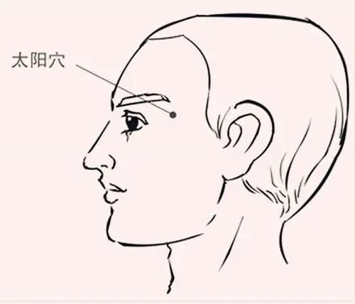 较敏感,采用点法揉法,力度为轻缓,以中指指端点太阳穴,由轻至重后轻,旋转揉动5次,动作持续,着力深透。此法可祛散风寒,解除头脑紧张感,以缓解头部血液循环障碍。