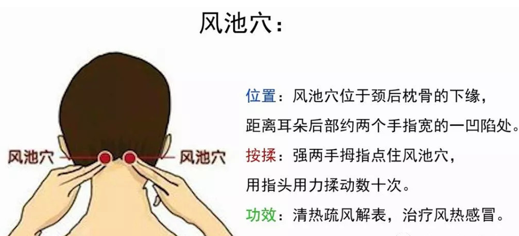 按摩手法同风府穴的手法,此法疏散在表的风邪,点穴开筋,松解局部肌肉痉挛。
