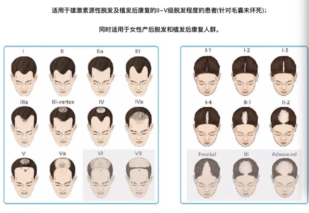 Theradome适用于雄激素源性脱发及植发后康复的II~V级脱发程度的患者(针对毛囊未坏死);同时适于女性产后脱发和植发后康复人群。