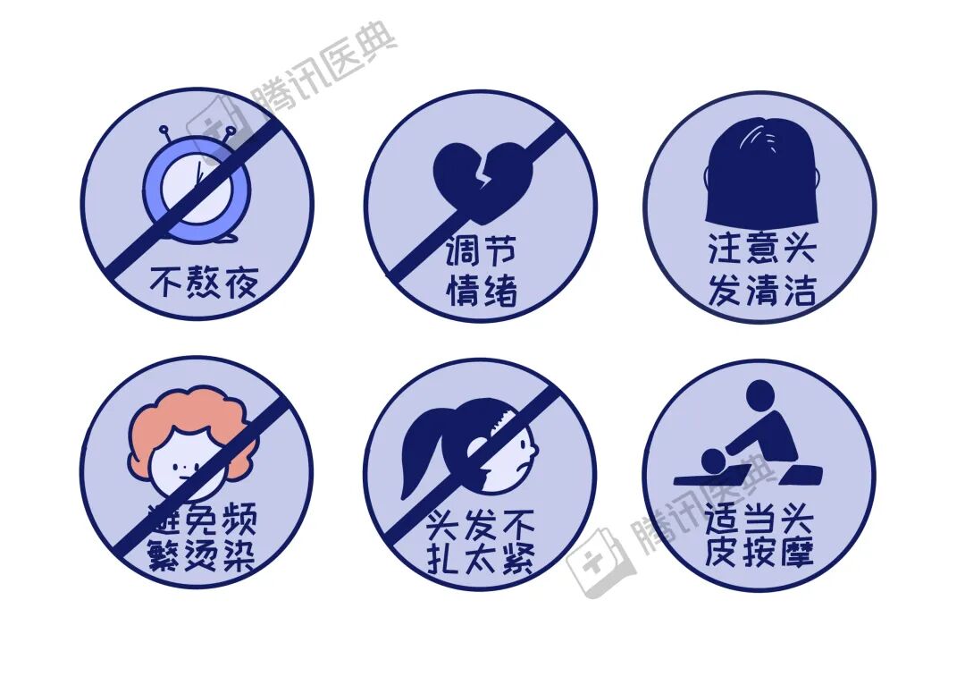 1. 保持健康生活习惯:长时间精神紧张、劳累、熬夜、不规律饮食,也会加剧脱发。