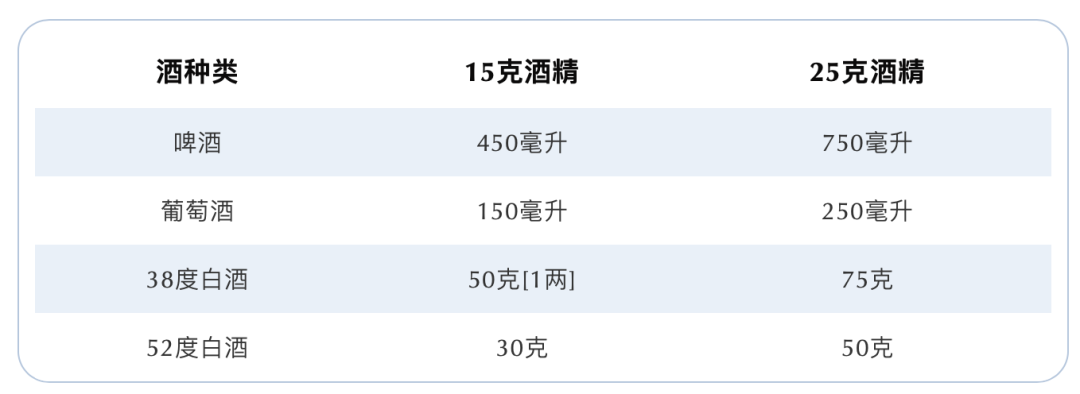 那么15克和25克酒精换算成酒是多少呢?