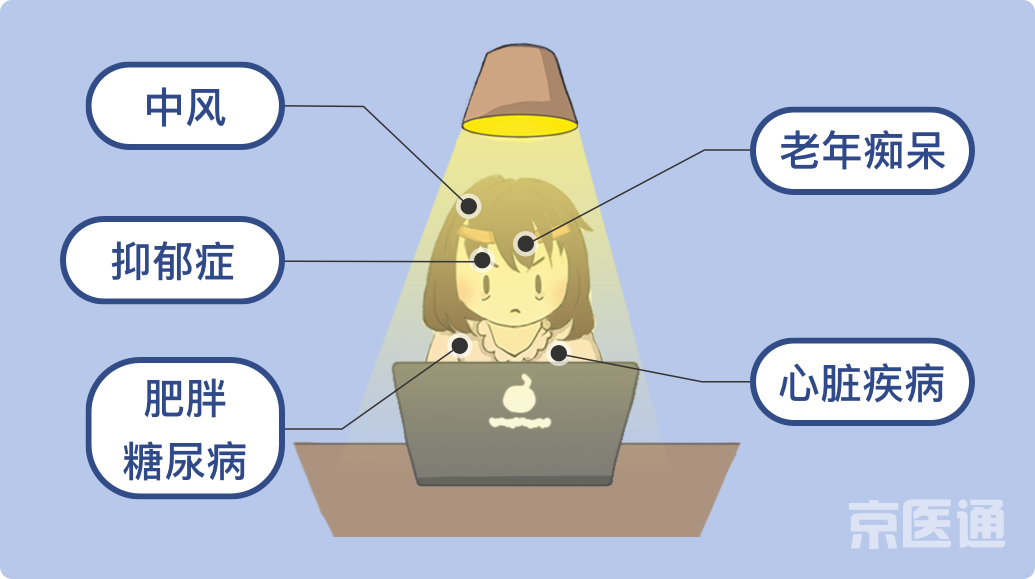 熬夜会增加以下疾病风险: