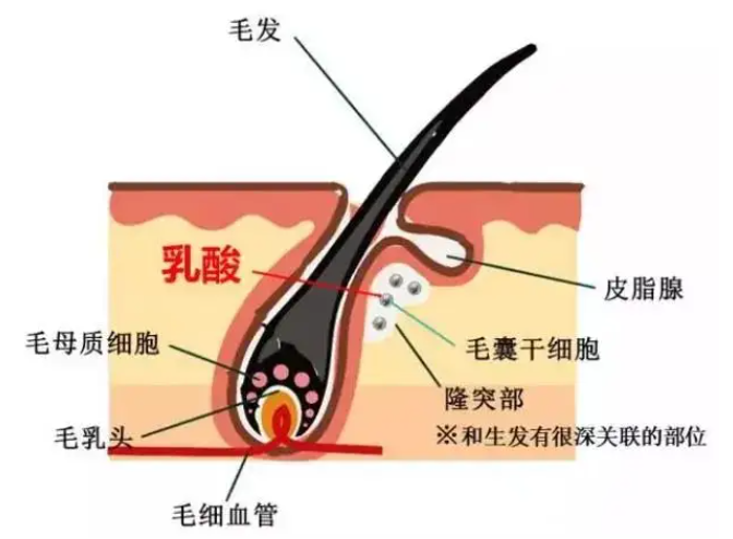 毛囊干细胞是定植于毛囊外根鞘隆突区(bulge区)的一群成体干细胞,属于上皮成分,具有慢周期性、自我更新、未分化和体外增殖能力强等特点。毛囊干细胞可在一定条件下诱导分化为上皮细胞、血管内皮细胞、黑色素细胞和平滑肌细胞等。在生长期,毛囊干细胞分裂增殖极为活跃,毛囊干细胞分化形成外根鞘细胞,并不断向下方移动,一点点包绕毛乳头。在进入衰退期后,外根鞘的上皮细胞绝大部分凋亡,只留少部分上皮细胞保存部分干细胞特性,这部分细胞在下个毛囊周期中分化出内根鞘以及毛干等。已有研究证明,毛囊干细胞的失活及毛囊生长周期破坏是造成脱发的根本原因。