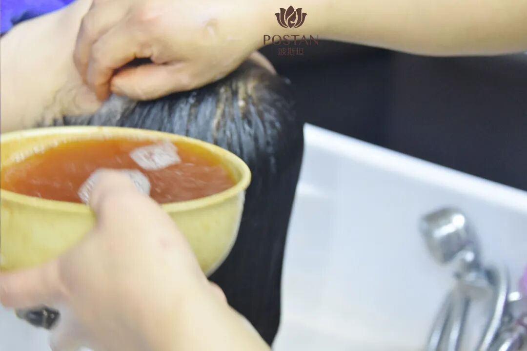 如药浴头疗蕴含多种珍贵的中草药,通过冲浇、按摩、疏通、熏蒸等技术,可以疏通头部经络,疏通头部淤堵,促进血液循环、改善头皮代谢;还可以清除多余的油脂、毒素和垃圾,平衡头皮油脂、代谢、菌群,使头皮处于健康的生态环境中,从而减少脱发的现象。