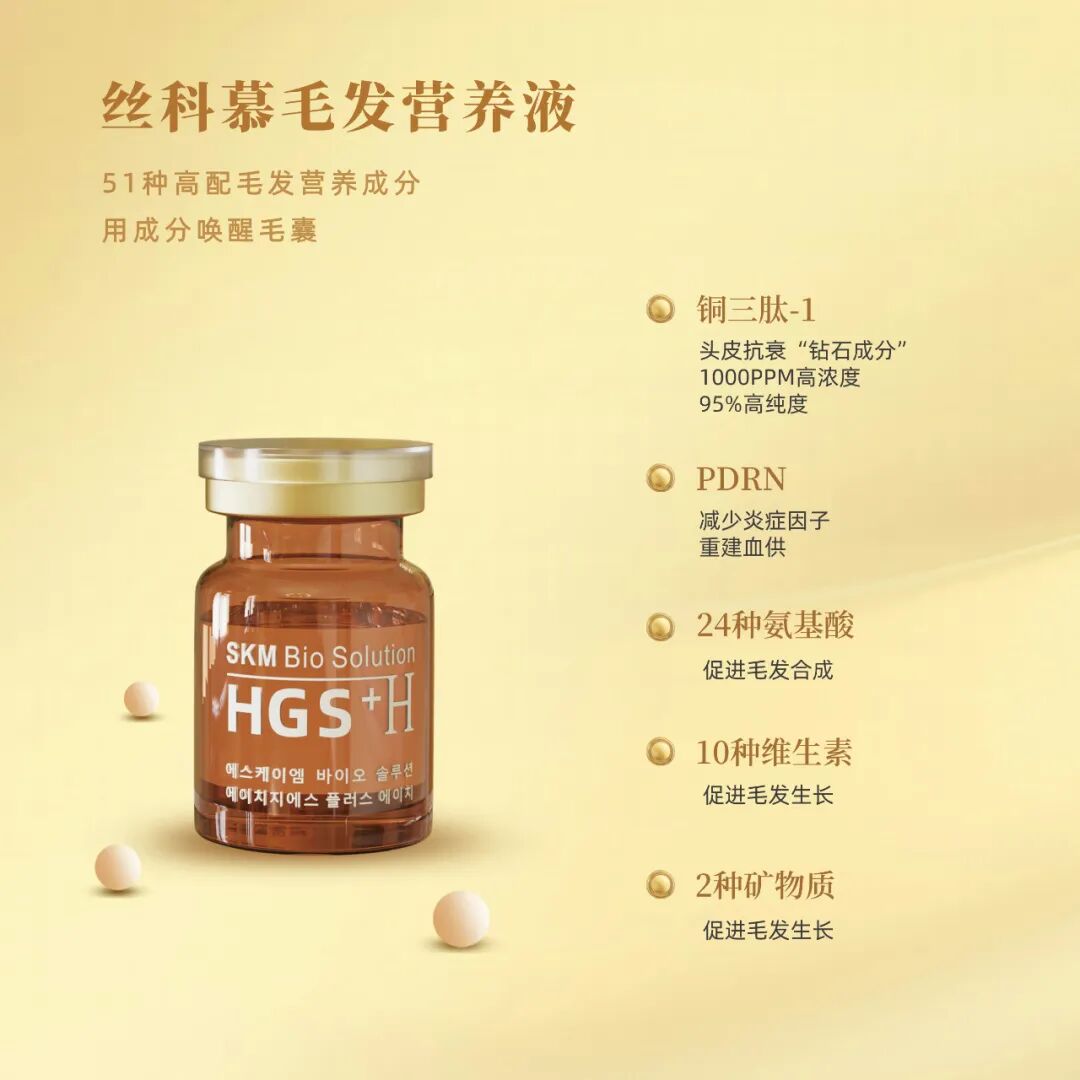 丝科慕毛发营养液中汇聚了51种毛发相关特性成分,其中包含10种维生素、24种氨基酸、2种矿物质、1种肽等,它们组成的强大营养阵容,能够为毛囊提供源源不断的营养,不仅助力现有头发站稳脚跟,还能扶持新发生长,达成加密加粗的效果。