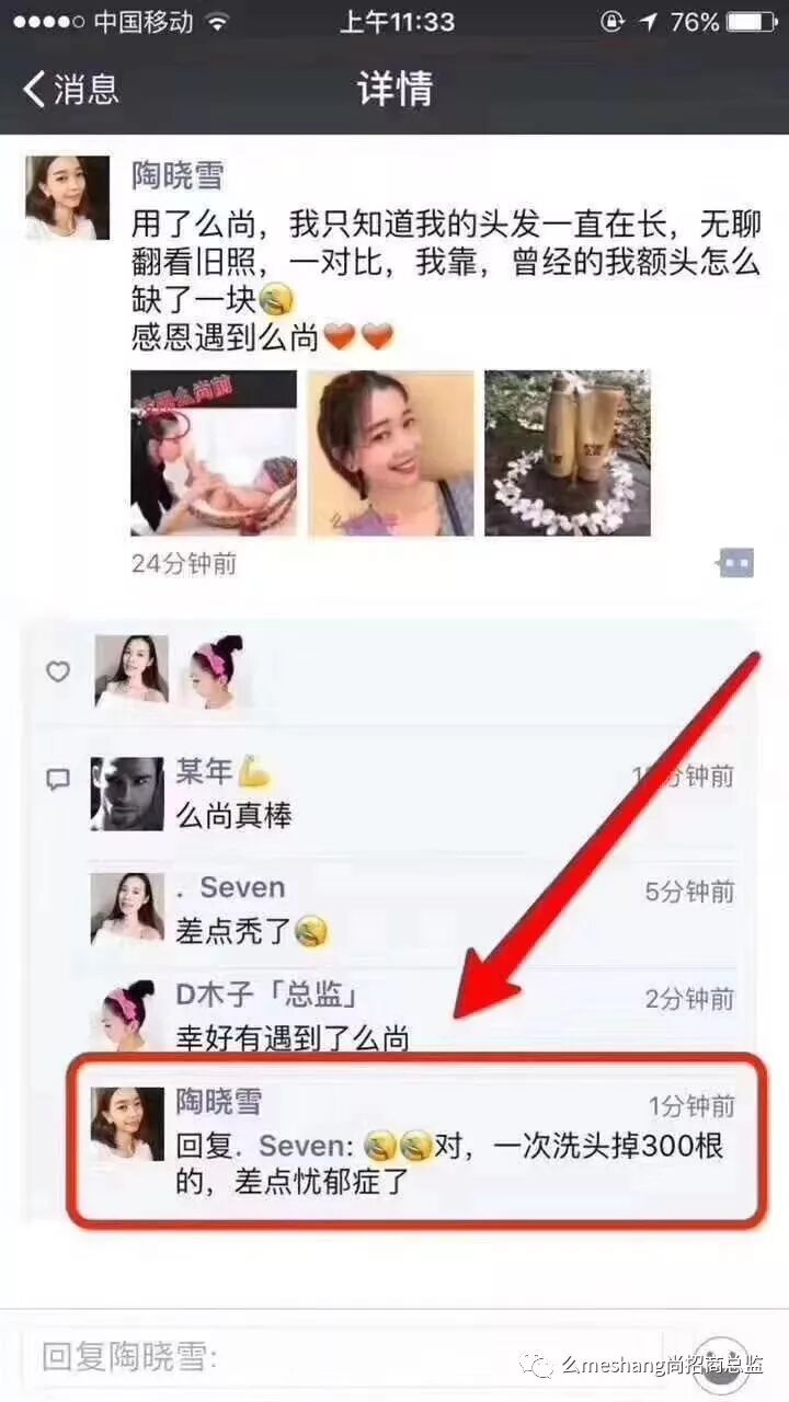 这是我们代理和顾客用的效果,我就不一一写出来了,么尚生发效果超级棒。我们都是收益者,把好的产品分享给大家,姜爱传递给更多的人。咨询产品可以+VX:z949084803