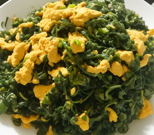 做法:将马齿苋择去杂物,用温水泡10分钟,清水洗净,切成段。鸡蛋打散,加入马齿苋调匀,放入精盐、黄酒、酱油、味精,调味。炒锅上火,放油烧热,将马齿苋蛋液倒入锅内炒熟,装盘即成。